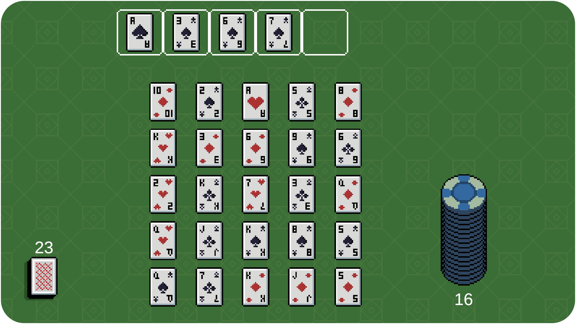 The card art was done by: Aspecs Gaming. (2024, May 5). Pixel Poker Cards [Digital asset pack]. itch.io.