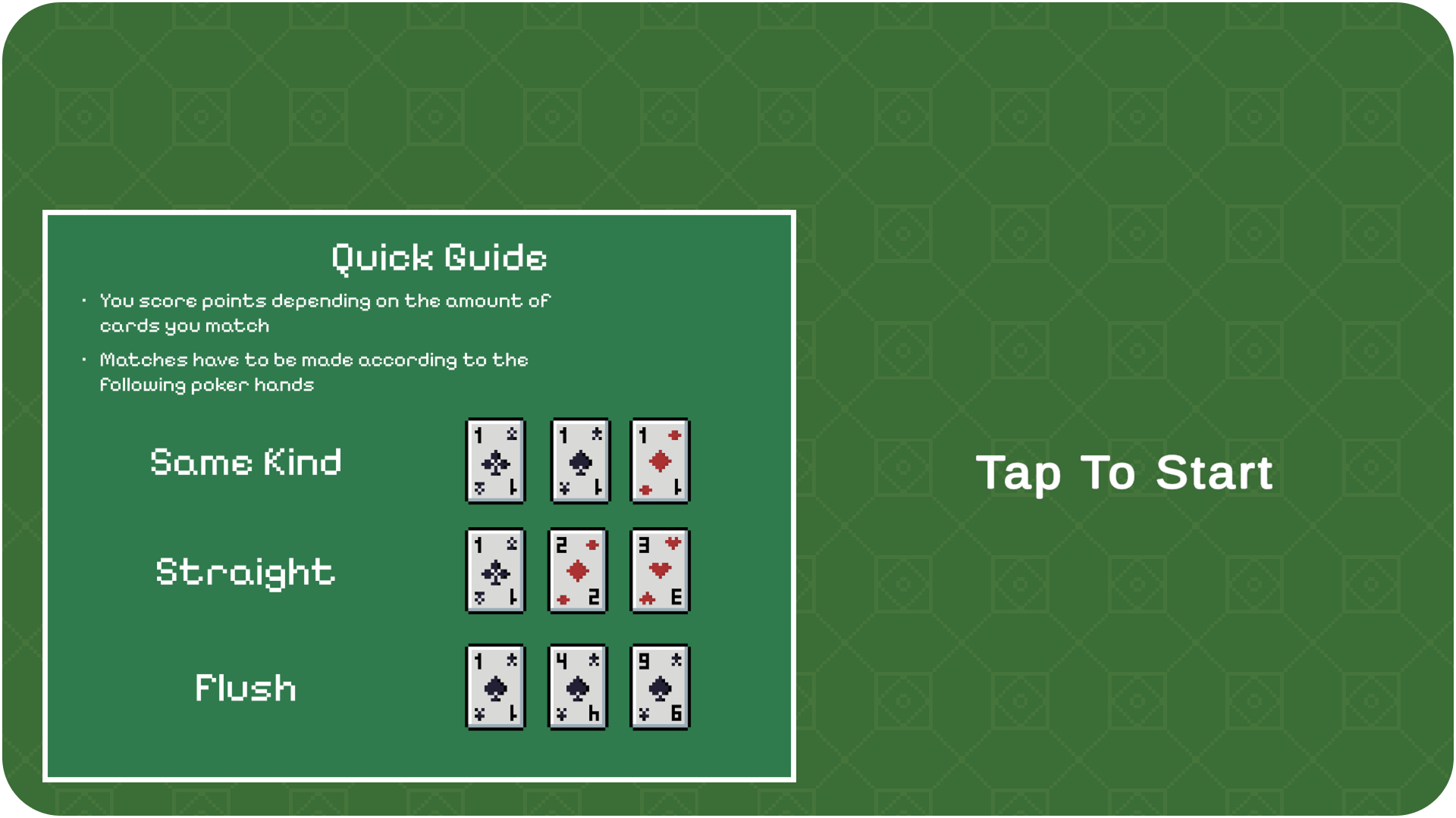 The controls are simple. Drag and drop cards to swap them. Try to form poker hands!